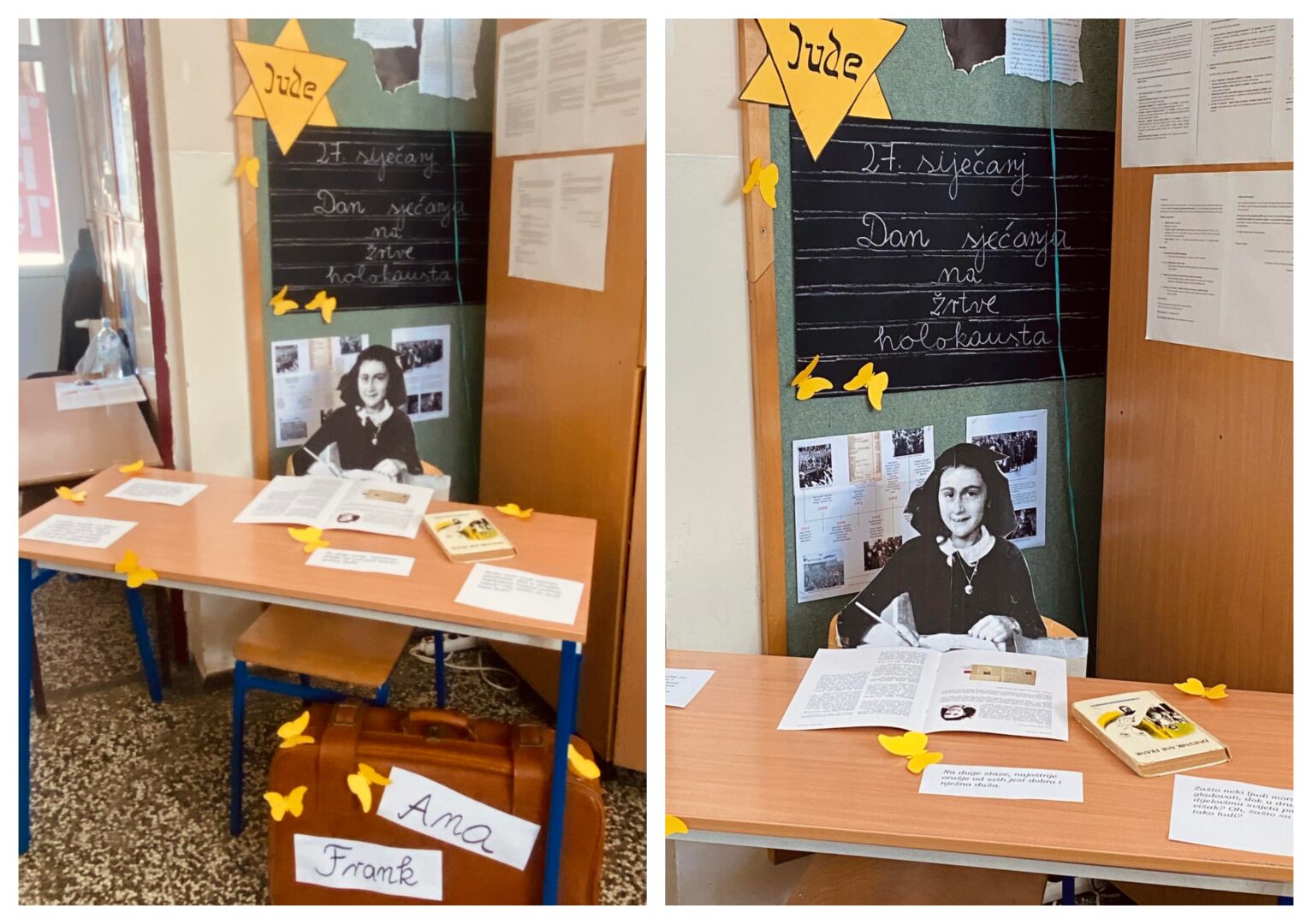 U našoj školi obilježavanje je organizirala učiteljica povijesti Kristina Bošnjak zajedno s učenicima 8.b razreda, koji su pripremili prigodnu izložbu posvećenu žrtvama holokausta.