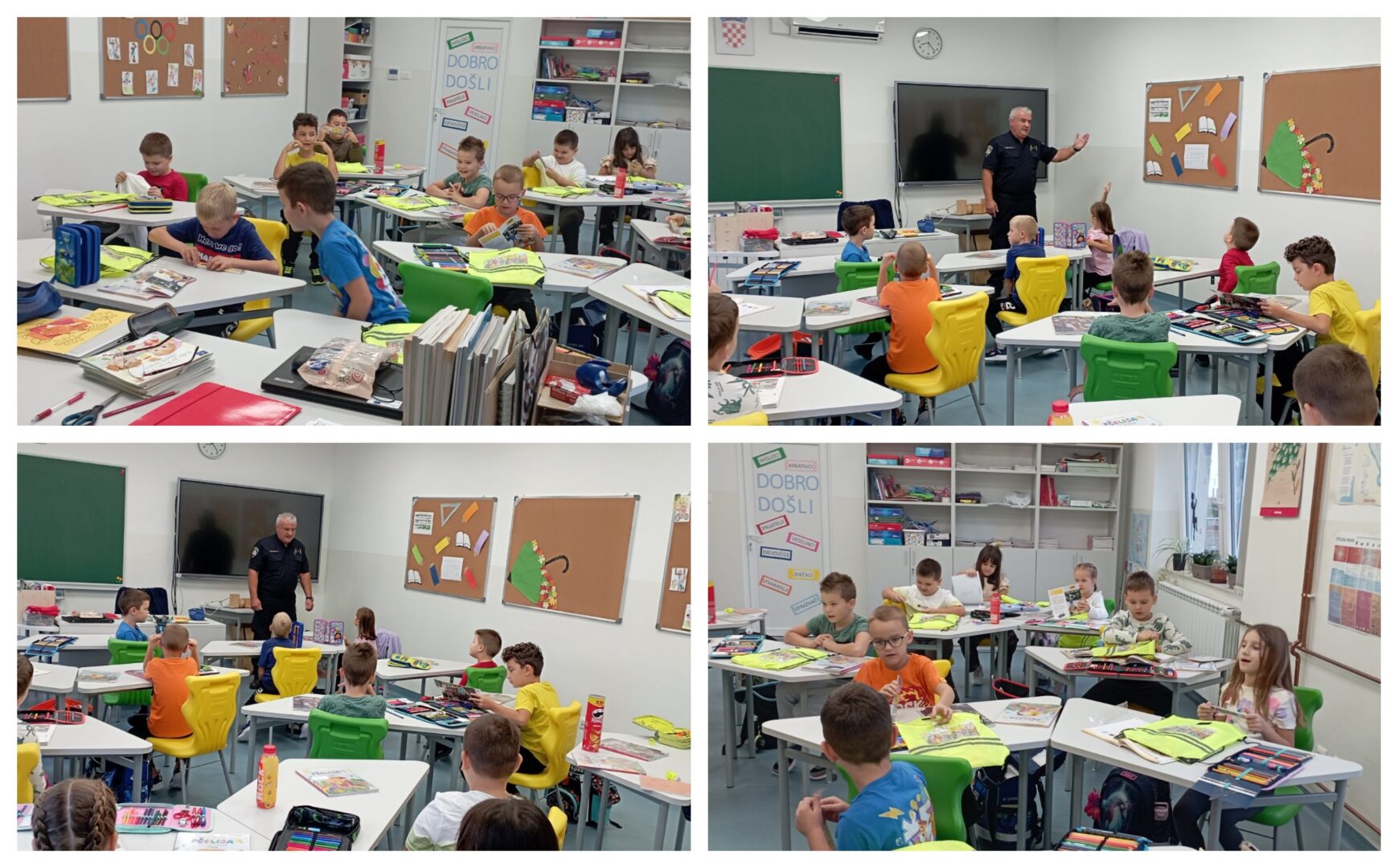 Početkom svake školske godine djelatnici PU Našice obilaze škole u sklopu mjera i aktivnosti s ciljem zaštite djece u prometu. Njihov djelatnik je u četvrtak, 25.9.2025., posjetio i naše prvašiće. U kratkom predavanju učenici su se upoznali s temeljnim pravilima sigurnog sudjelovanja u prometu kao pješaci, ali i kao biciklisti. U suradnji s HAK-om pripremili su i poklone (promotivne materijale) koji su jako razveselili učenike.