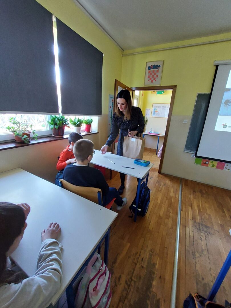 U sklopu školskog projekta “Mislim zeleno, čuvam Zemlju” u petak, 4.travnja 2025., u goste smo pozvali gđu Vlatku Buzjak Služek iz Hrvatske agencije za poljoprivredu i hranu (HAPIH) iz Osijeka koja je učenicima naše škole održala edukativno predavanje o bacanju hrane kao aktualnoj problematici u cijelom svijetu što predstavlja ekološki, gospodarski, ekonomski i društveni problem. U svom je predavanju gđa Vlatka iznijela korisne savjete kako možemo smanjiti bacanje hrane, kako hrana dolazi do našeg stola te pitanjima i potpitanjima interaktivno vodila razgovor s učenicima o njihovim iskustvima s čuvanjem, skladištenjem i bacanjem hrane. Pogledali smo i zanimljiv kratki crtani film. Spomenula je i nametnike poput krpelja i komaraca koji mogu prenijeti uzročnike nekih bolesti opasni za čovjeka i životinje. Na kraju predavanja gospođa Vlatka je naglasila da se svi pokušamo osvijestiti i pridržavati navedenih savjeta i metoda o smanjenju bacanja hrane kako ono ne bi negativno utjecalo na okoliš i klimu, te radi smanjenja gladi i nedostatka hrane na planeti. Zahvaljujemo se gospođi Vlatki na edukativnom i vrlo zanimljivom predavanju i poklonima uručenim svim učenicima.