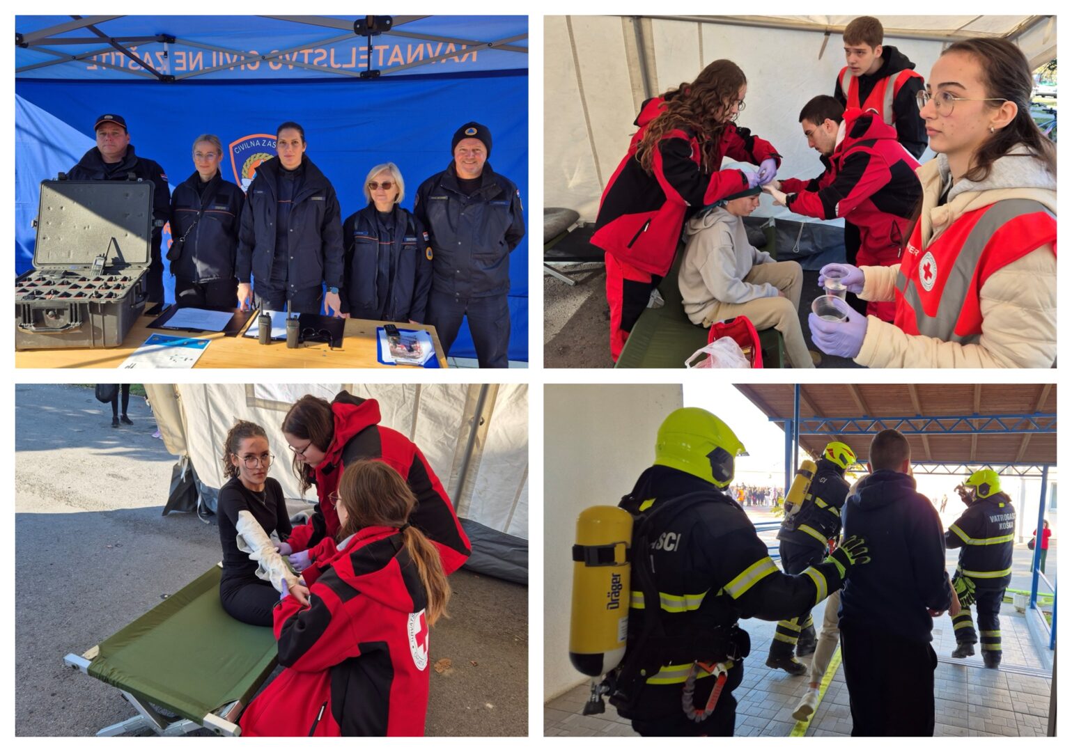 U petak, 14. studenoga, u našoj školi održana je općinska vježba civilne zaštite “Požar 2025”, organizirana u suradnji s Područnim uredom civilne zaštite Osijek i Općinom Koška. Cilj vježbe bio je provjeriti spremnost operativnih službi i unaprijediti postupke evakuacije i sigurnosti u školskim ustanovama. Prema scenariju vježbe, uslijed olujnog nevremena došlo je do udara munje i izbijanja požara u školskoj zgradi. Djelatnici škole, učenici i uključene službe uspješno su proveli evakuaciju, zbrinjavanje unesrećenih i sve predviđene operativne postupke. Učenici ekipe Prve pomoći sudjelovali su u pružanju pomoći ozlijeđenima, dok su ostali timovi sudjelovali u realističnom prikazu ozljeda, službi traženja, psihosocijalnoj podršci te postavljanju improviziranog izmještajnog naselja. U vježbi su, uz učenike i djelatnike naše škole, sudjelovali DVD Koška, Gradsko društvo Crvenog križa Našice, Policijska postaja Našice, HGSS Stanica Osijek, Stožer civilne zaštite Općine Koška te povjerenici i postrojbe civilne zaštite. Vježba je uspješno provedena te je potvrdila važnost redovitog uvježbavanja i suradnje svih službi kako bi se osigurala maksimalna sigurnost naših učenika i djelatnika.