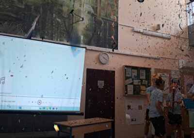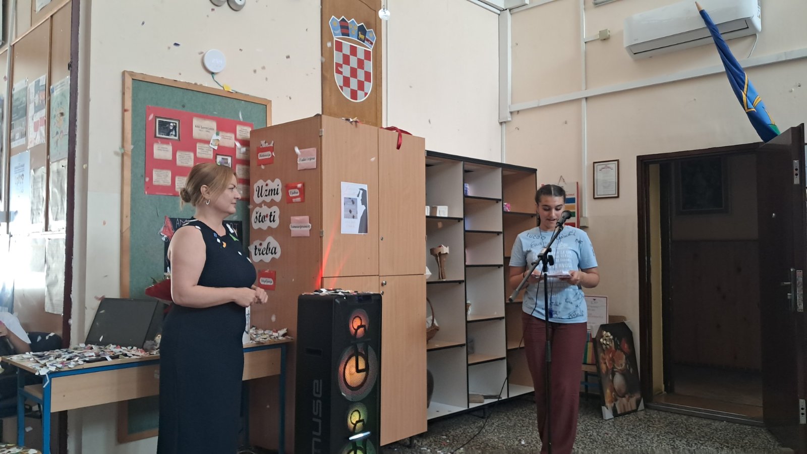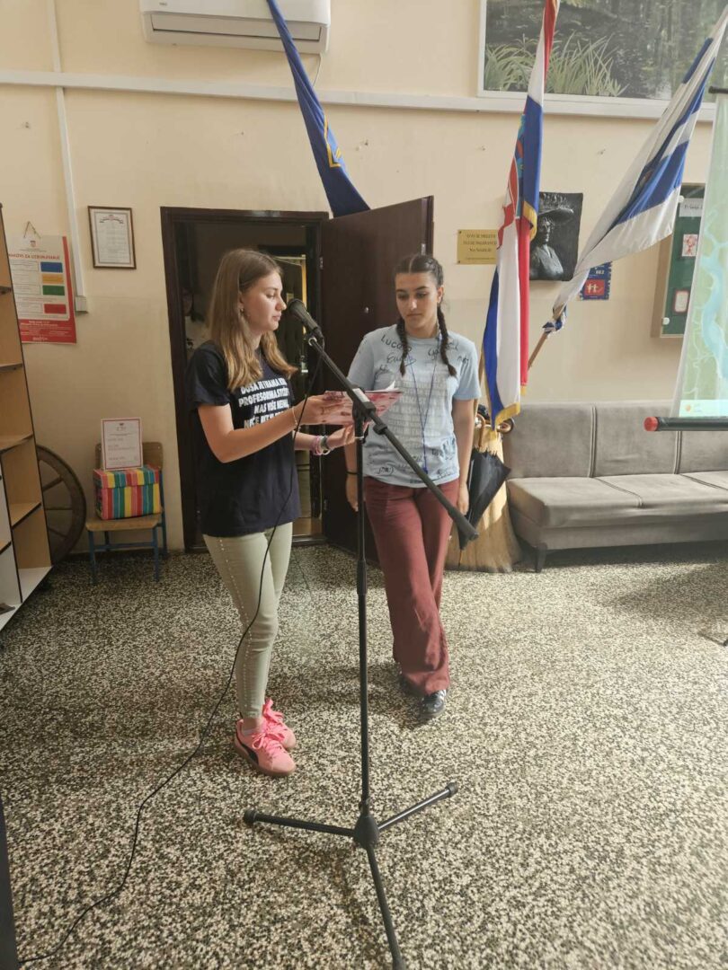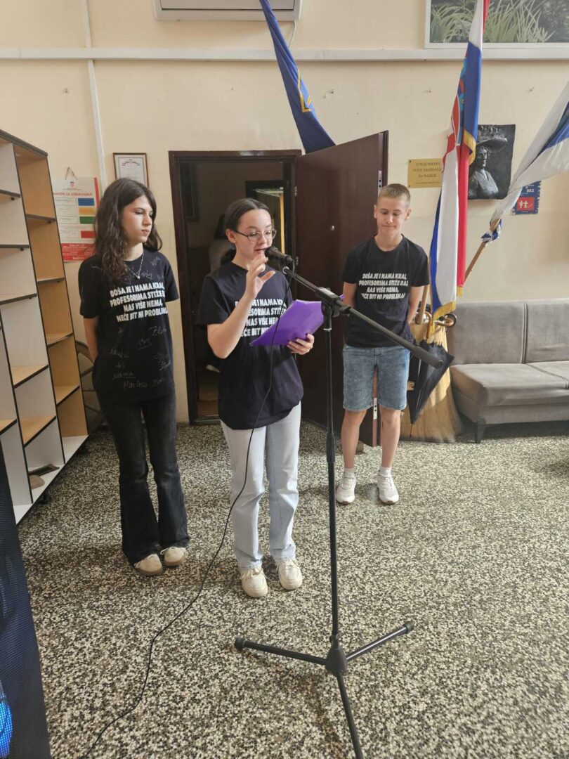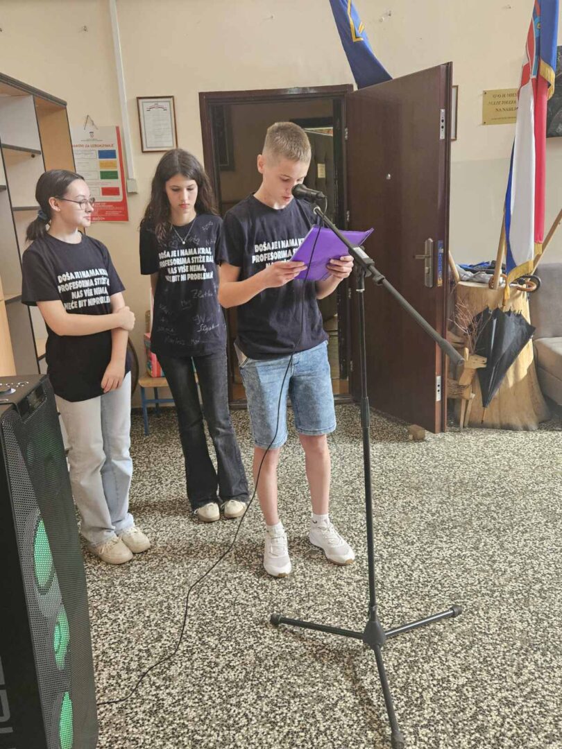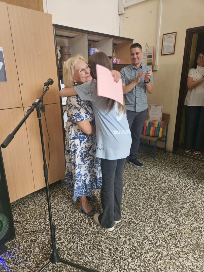 Zadnji nastavni dan, 13.6., učenici 8.a i 8.b razreda imali su svoju završnu priredbu. Na početku priredbe sve nazočne pozdravio je ravnatelj, gospodin Hrvoje Štefanec, a zatim dodijelio školske nagrade najuspješnijim učenicima ove školske godine. Knjižničarka, Dubravka Payerl, zahvalila se osmašima s kojima je uspješno surađivala sve ove godine. Prigodnim programom, koji su nam pripremili u suradnji s učiteljicom Blankom Mihić, naši osmaši oprostili su se od osnovne škole, od učitelja, od djelatnika i od svojih školskih prijatelja. Bilo je vrlo zanimljivo i emotivno prisjetiti se nezaboravnih trenutaka tijekom njihovog osmogodišnjeg školovanja. Pred njima su novi izazovi, a mi im želimo puno sreće i uspjeha u životu i u daljnjem školovanju.